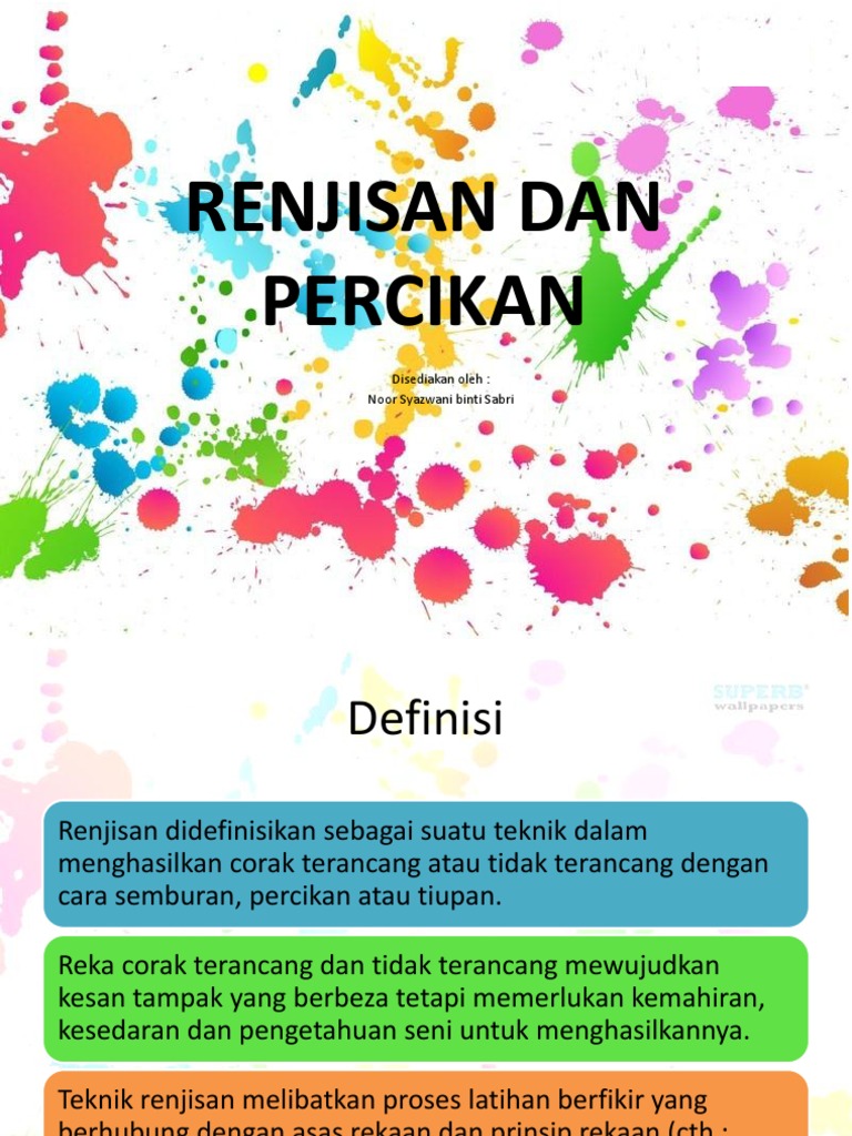 Psv -Bidang Mencorak Dan Rekaan from reader012.pdfslide.tips Karya ini juga melibatkan stensilan. 1) lukiskan bentuk diatas kertas lukisan mengikut citarasa anda. 喷洒 renjisan dan percikan easy kids art : Teknik renjisan percikan pendidikan visual tahun. If you can not play or download renjisan dan percikan tahun 1, please use search form on top this page to try search again. Spray painting 喷洒 renjisan dan percikan pendidikan seni tahun 1,2 dan 3 kssr semakan this video is suitable for teachers and parents to show the children how. Surga yang tak dirindukan 3 (2021) 16 apr 2021. Join channel telegram agar tidak ketinggalan notifikasi update.