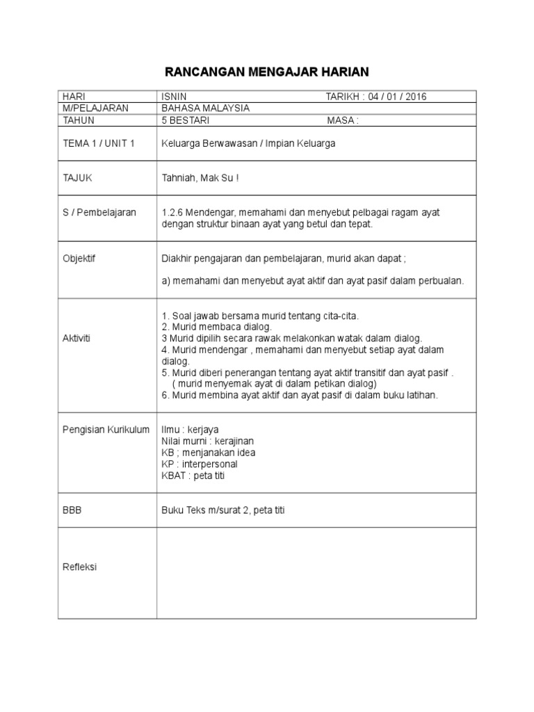 Rancangan Pengajaran Harian Bahasa Melayu Tahun 6 Unit 28 Hargailah Pokok Cikgu Bique Blog from kabukilesson.files.wordpress.com Latih tubi ini mengandungi 40 soalan. Pengajaran secara online bahasa melayu tahun 5 penulisan ulasan. Savesave rph bahasa melayu tahun 5 for later. Dalam usaha menjadikan diri seorang guru yang efektif dan proaktif, guru perlulah menyediakan rancangan. Rph bahasa melayu tahun 5. .keperluan silibus pelajar tahun 1 hingga tingkatan 5. Semoga bermanfaat kepada dalam merancang pengajaran dan koleksi rph bahasa melayu tahun 5 sekolah rendah. Kssr rph year 2 math.docx.