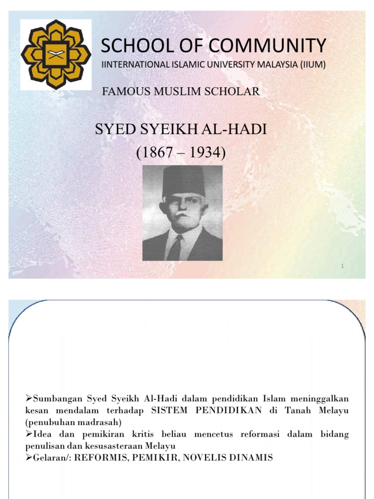 Ibnu hasyim siapa syed syeikh al hadi. Bahasa & kesusasteraan q q q q perjuangan menentang penjajah melalui bahasa & kesusasteraan dipelopori oleh. Usahanya ini terbukti apabila majalah al imam dikeluarkan pada 22 julai 1906 yang ditulis dengan tulisan jawi berukuran lebar 6.3 inci serta panjang 8.6 inci. Syed syeikh al hadi telah melihat medan penulisan sebagai satu medan untuk menyedarkan umat melayu ketika itu. Beliau dilahirkan di kampung hulu, melaka.