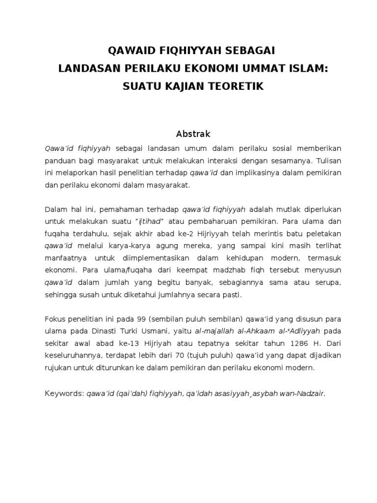 20 downloads 204 views 381kb size. In relation to islamic banking, any. Qawaid fiqhiyyah iqtishadiyah kaidah fikih ekonomi syariah edisi 2 ahmad musadad s h i m s i penerbit litnus from penerbitlitnus.co.id. Qawaid fiqhiyyah merupakan kaedah yang bersifat umum meliputi sejumlah masalah fiqh dan melaluinya dapat diketahui hukum masalah. Qawaid fiqhiyyah or known as legal maxims in our language are one of the.