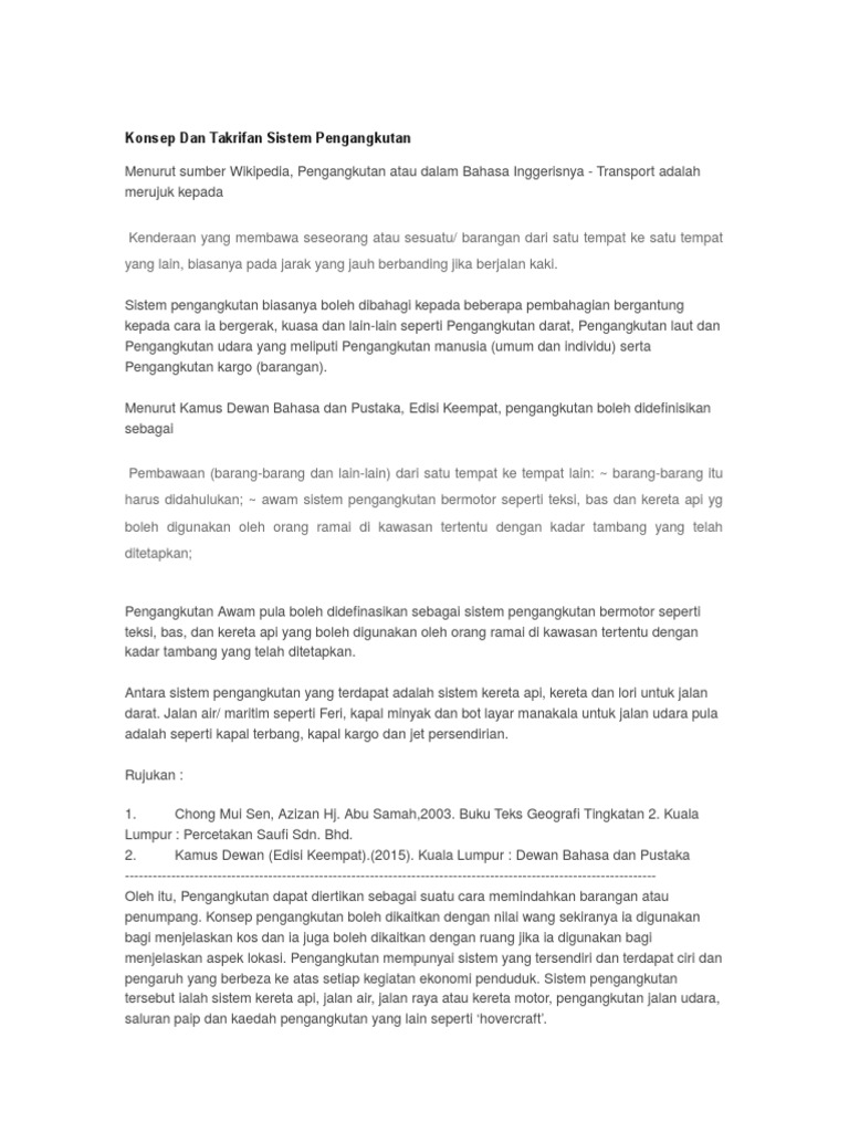 Related : Konsep Dan Takrifan Pengangkutan Awam : Takrifan sistem pengangkutan boleh dihuraikan/ ditulis dalam beberapa ayat..