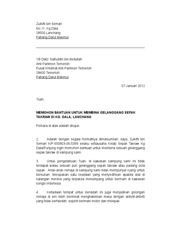 Related posts to contoh surat permohonan bantuan kewangan baitul mal. Contoh surat tanda terima motorcycle review and galleries via motocyclenews.top. Contoh surat mohon peruntukan dari yb documents via kotasurat.com. Doc contoh surat permohonan bantuan pendidikan walleralf walle academia edu. Surat permohonan bantuan adalah jenis surat memohon bantuan samada kewangan,pendidikan,dana perniagaan,rumah dan biasiswa dari sesebuah organisasi,agensi dan individu. Saat sebuah acara akan dilaksanakan, tidak semua inilah mengapa, banyak dari para penyumbang justru senang saat dikirimi surat permohonan. Salah satu faktor yang biasanya sering menjadi kendala adalah masalah yang berkaitan dengan finansial atau. Dengan segala hormatnya saya merujuk kepada perkara tersebut. Contoh surat rasmi memohon sumbangan buku contoh 36 via contoh36.blogspot.com. Yb sik bahas ruu perbekalan penguntukan semula peruntukan perbelanjaan. Contoh surat rasmi permohonan bantuan kewangan info melayu. Contoh surat mohon peruntukan dari yb via www.scribd.com. Contoh surat permohonan pertukaran via www.neodv8.co.